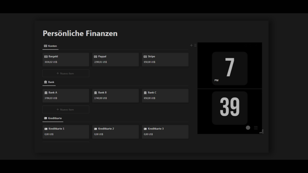Meistern Sie Ihre persönlichen Finanzen und übernehmen Sie die Kontrolle über Ihre finanzielle Zukunft mit unserer vollständigen Vorlage für persönliche Finanzen in Notion. Diese sorgfältig gestaltete Vorlage gibt Ihnen die Werkzeuge an die Hand, die Sie benötigen, um Ihre Einnahmen, Ausgaben, Ersparnisse und Investitionen effektiv zu visualisieren, zu organisieren und zu verwalten.